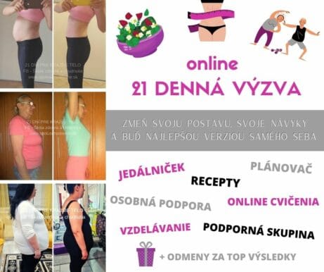 Chcete naozaj schudnúť, mať svoj jednoduchý jedálniček, domáce cvičenie, vedenie a podporu skvelej skupiny na facebooku? PRIDAJTE SA DO ONLINE PROGRAMU 21 DNÍ PRE KRAJŠIE TELO – viac informácií a výsledky TU>>