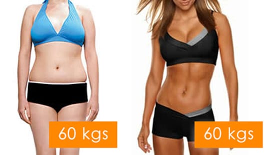 Na prvom obrázku vidíte postavu s minimom svalov a nadbytkom tukov (množstvo tukov v tomto prípade môže byť totožné, ako u človeka, ktorý má nadváhu, alebo obezitu). Vedľa zas vidíte postavu rovnakej váhy ale s minimom tukov a väčším množstvom svalov v dobrej kondícii.